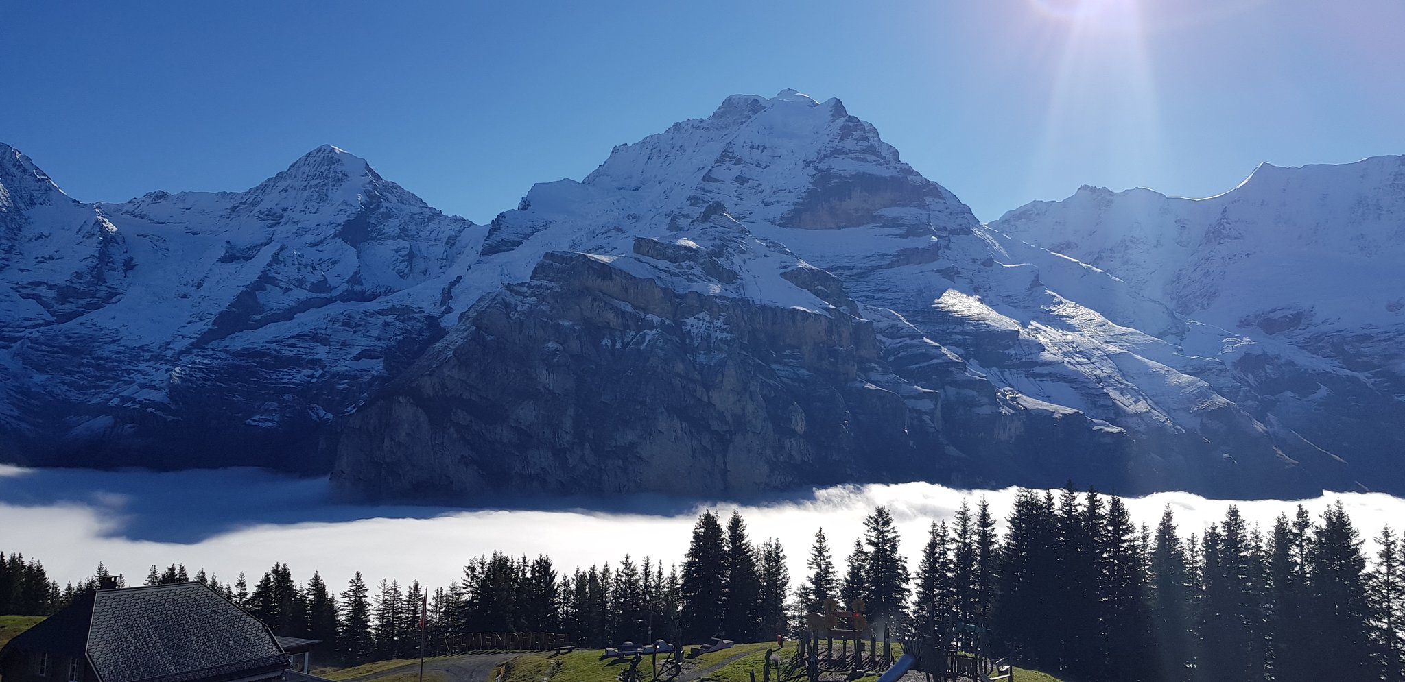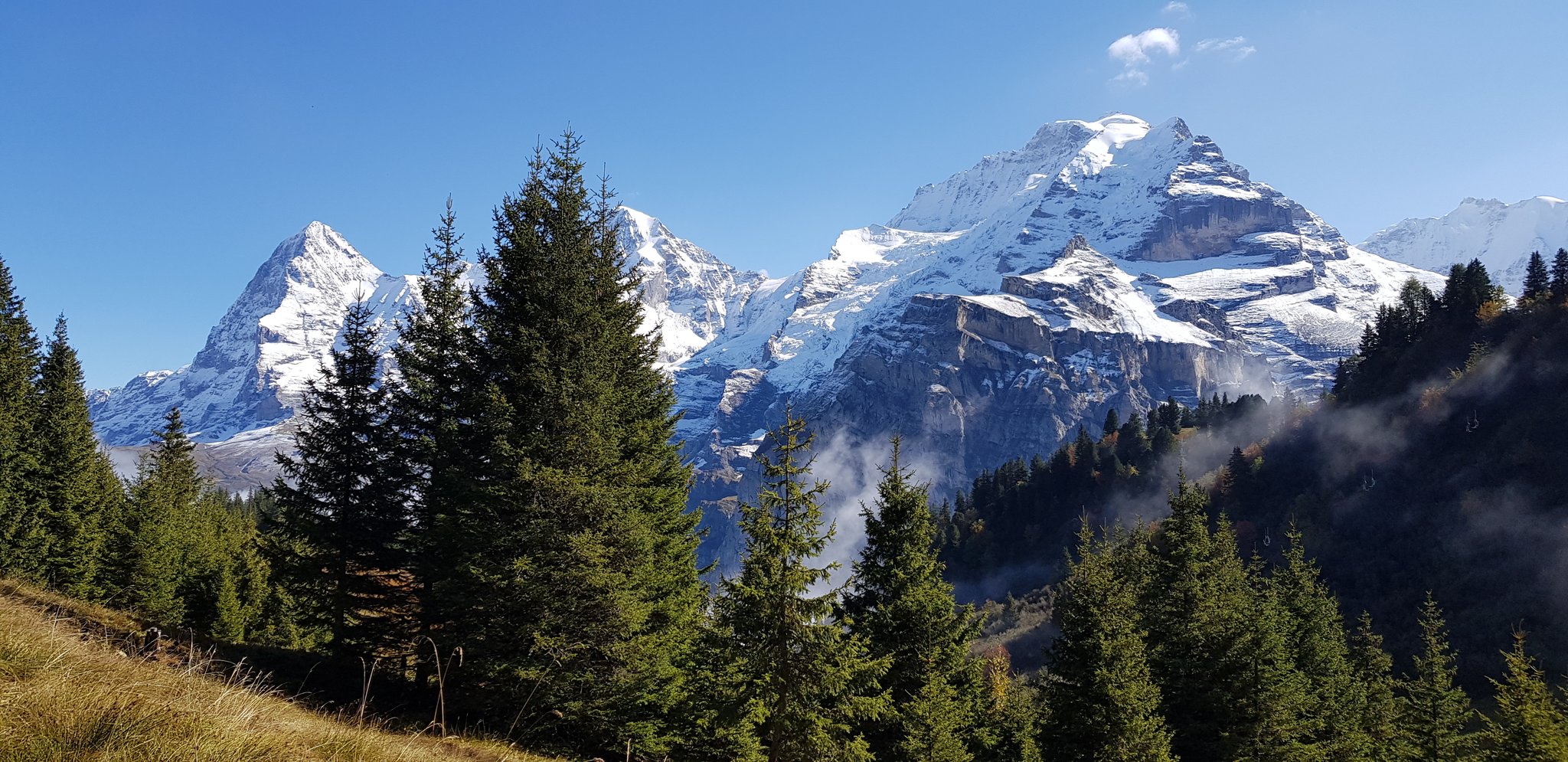 Wir sind auf dem Allmendhubel gestartet und wanderten über den Mountain View Trail nach Grütschalp. Das Panorama ist einfach einzigartig auf den Eiger, Mönch und Jungfrau. Reine Wanderzeit ca. 2 h.