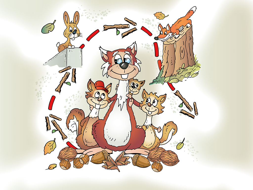 Gemeinsam mit drei unternehmungslustigen Eichhörnchen-Kindern geht es auf die Suche nach den Nussvorräten der Eichhörnchen-Grossmutter.
